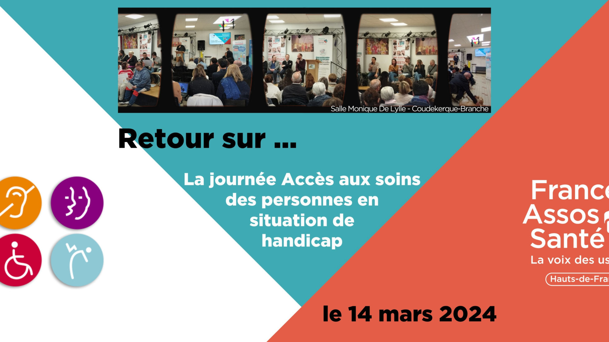 Après la réalisation d’une enquête sur l’Accès au soins des personnes en situation de handicap dans les établissements de santé des Hauts-de-France, la production d’un rapport mettant en avant les résultats de ce travail, nous vous avons proposé de participer à une journée d’échanges sur le sujet : le 14 mars 2024 à Coudekerque-Branche dans la salle Monique de Lylle des Papillons Blancs de Dunkerque.
