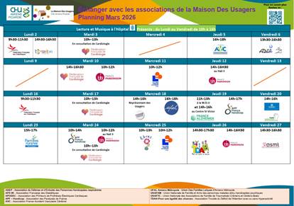 Calendrier des permanences et évènements de la Maison des Usagers (novembre 2025) :