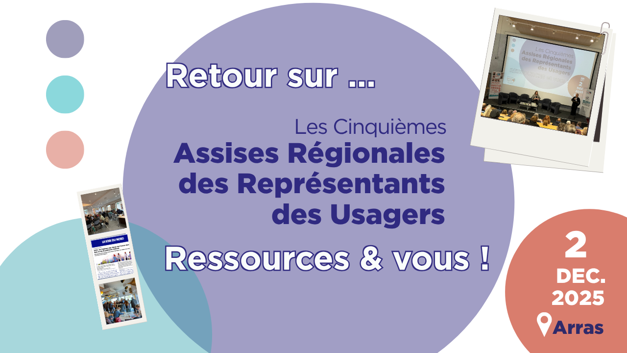 Pour la cinquième année consécutive, nous avons proposé une rencontre à l’ensemble des Représentants des Usagers des Hauts-de-France, plus de 110 RU et bénévoles ont répondu présents le mardi 2 décembre 2025 à Arras pour les Cinquièmes Assises Régionales des Représentants des Usagers sur le thème « Ressources et vous ! »