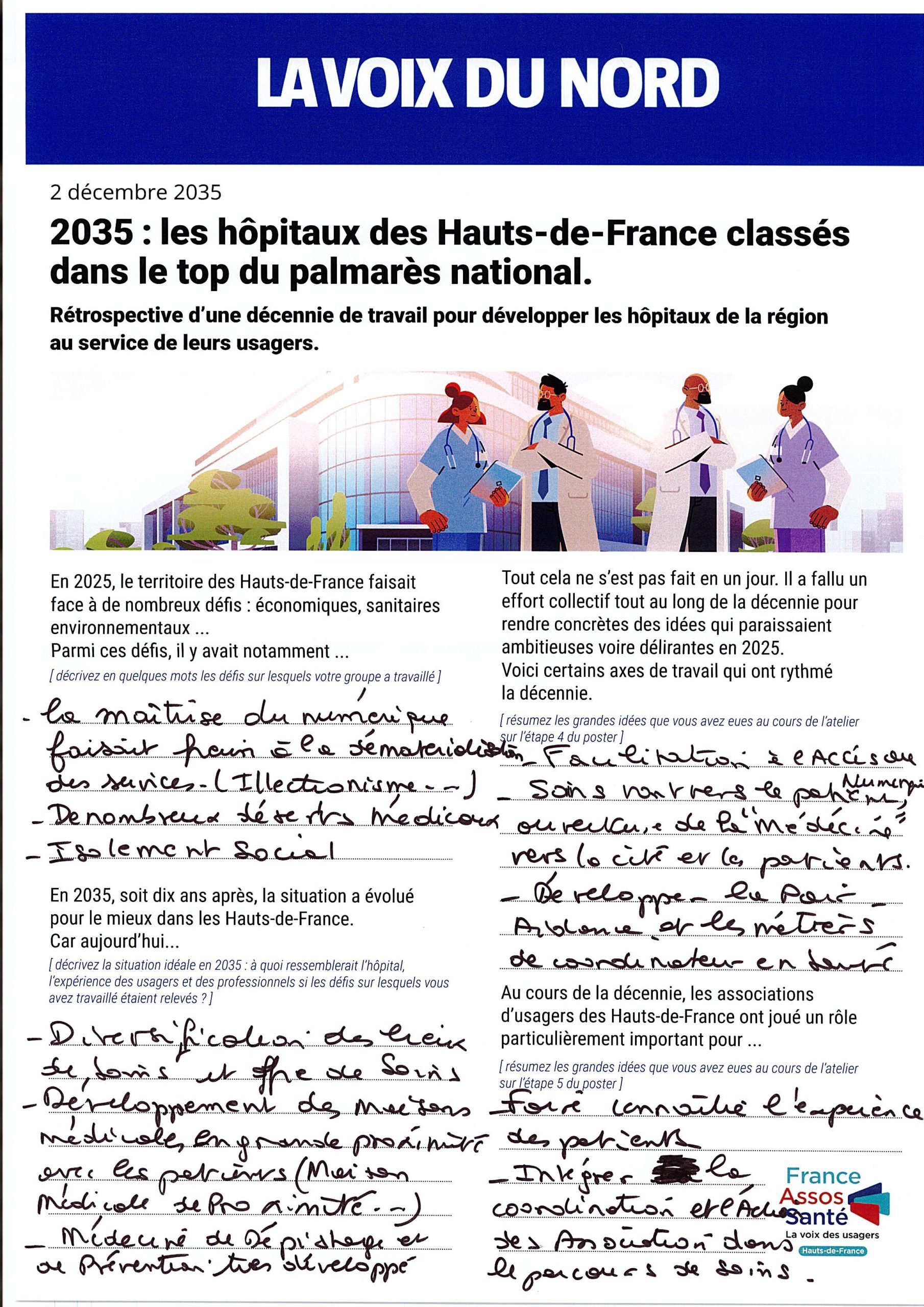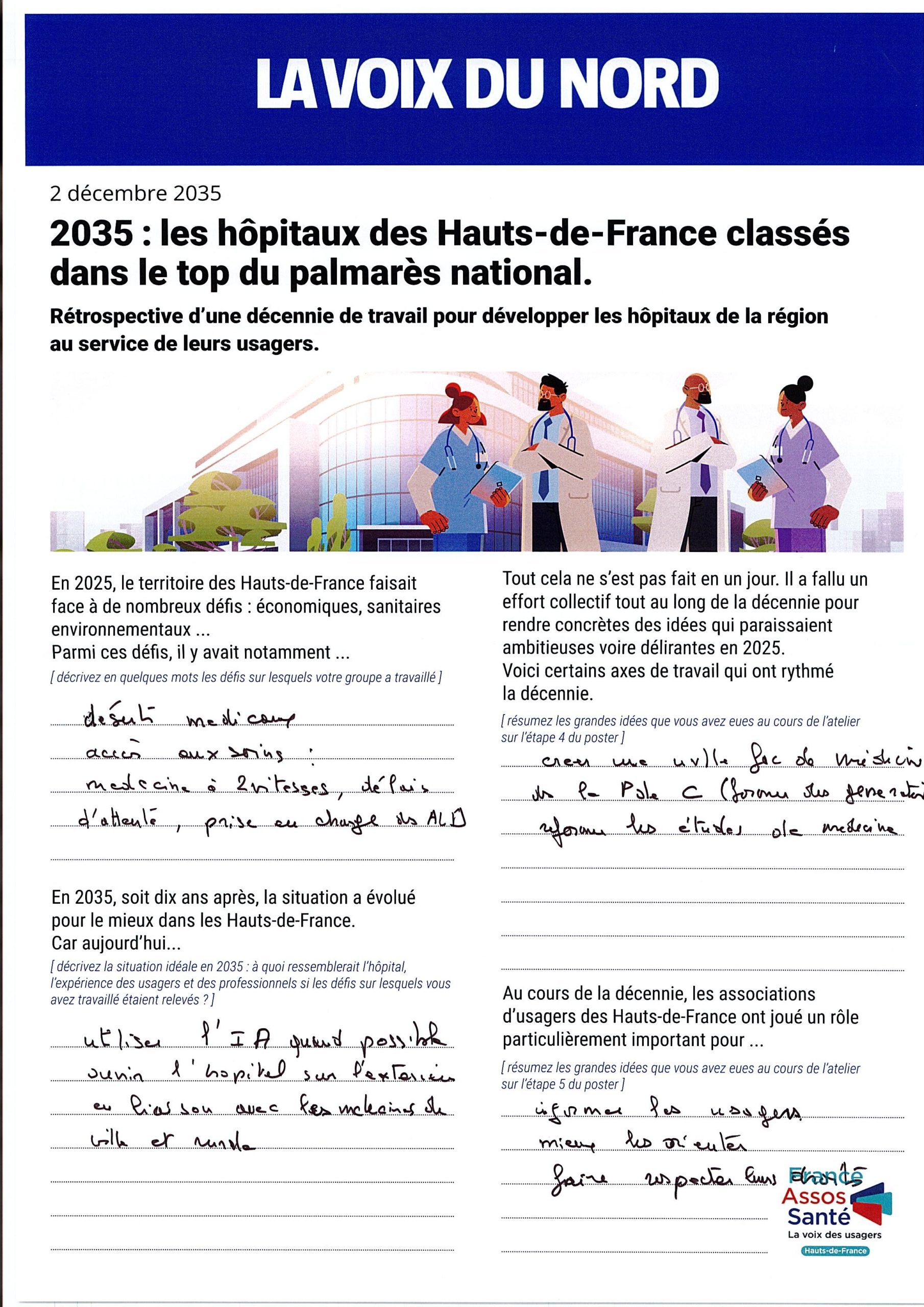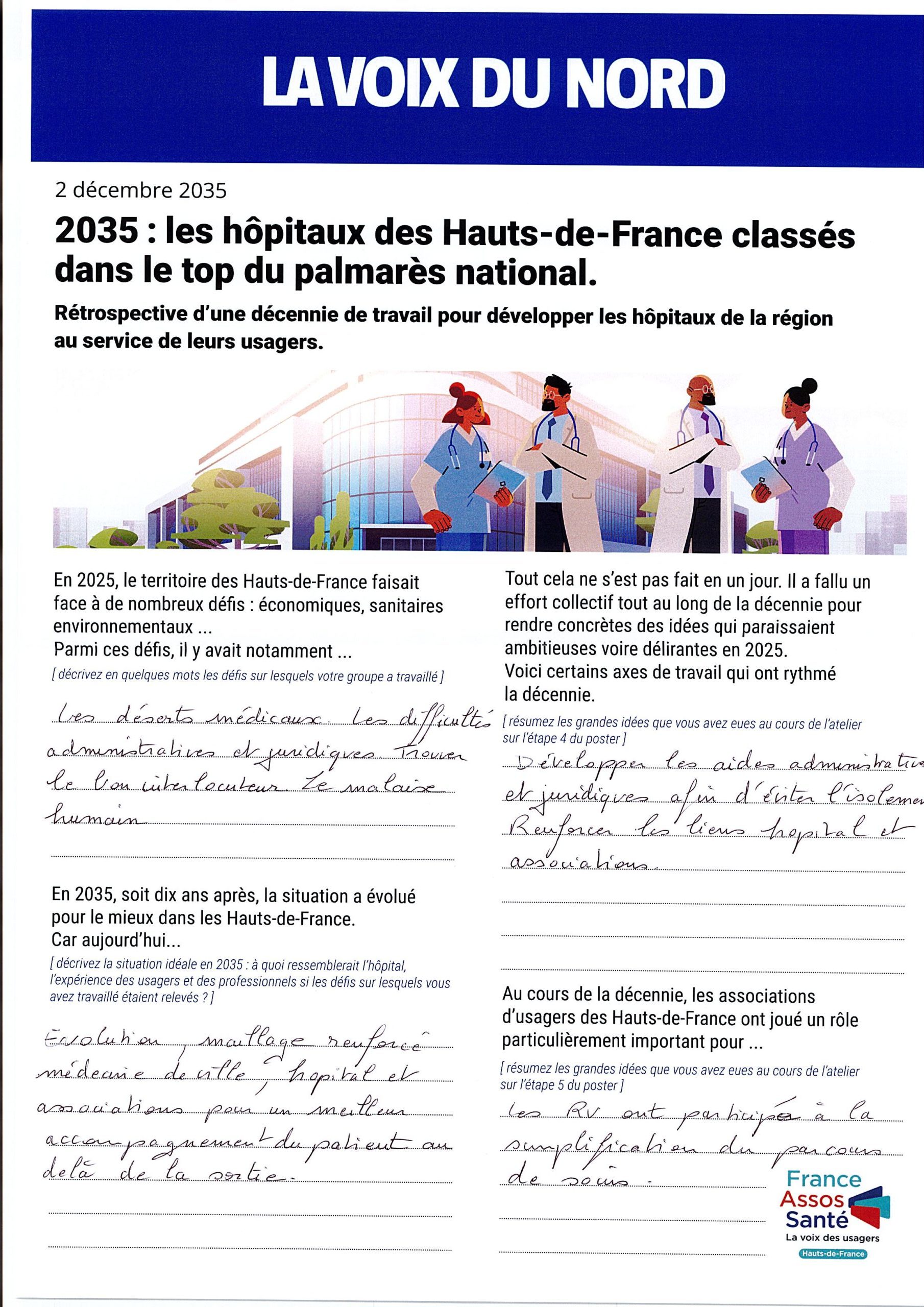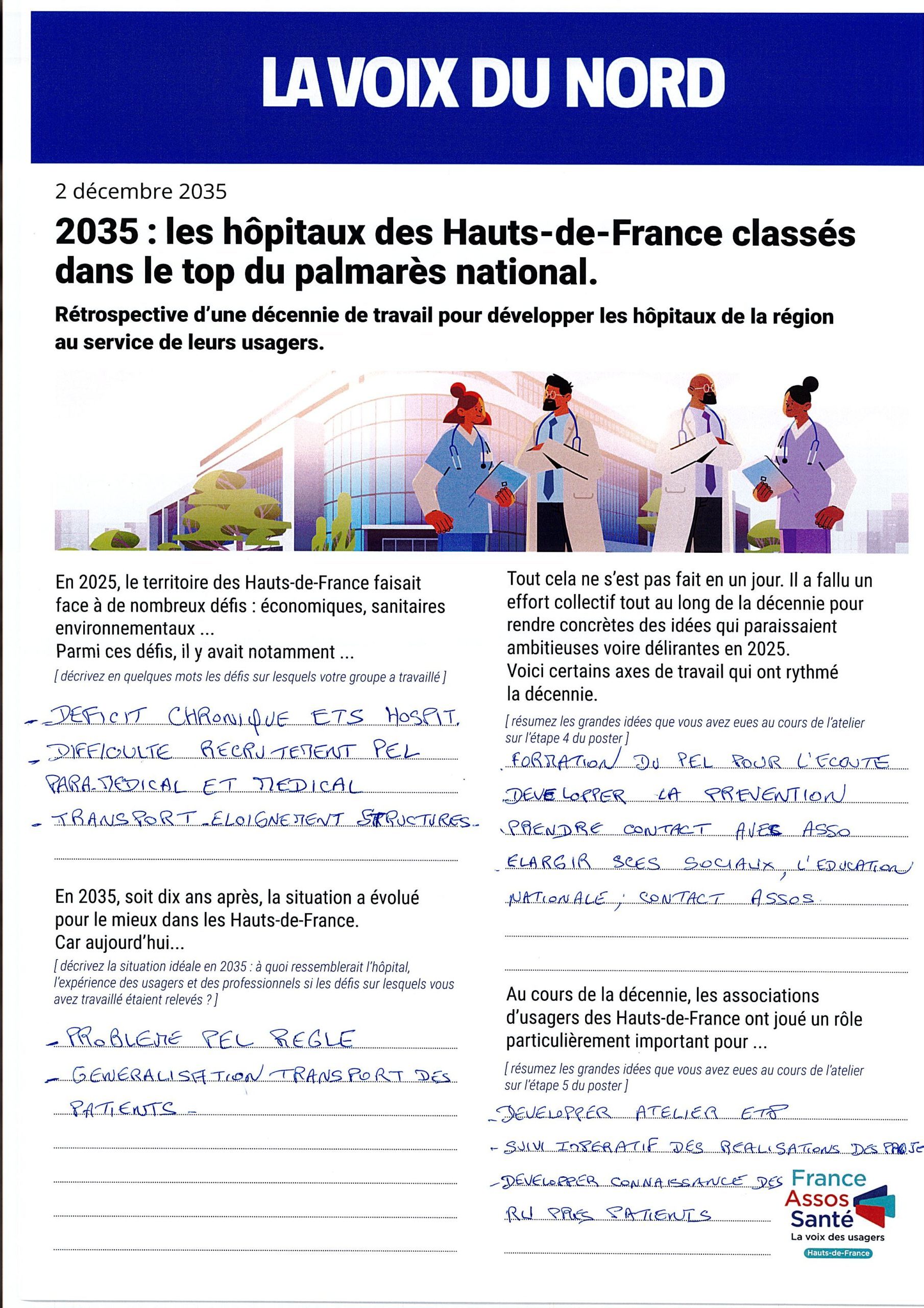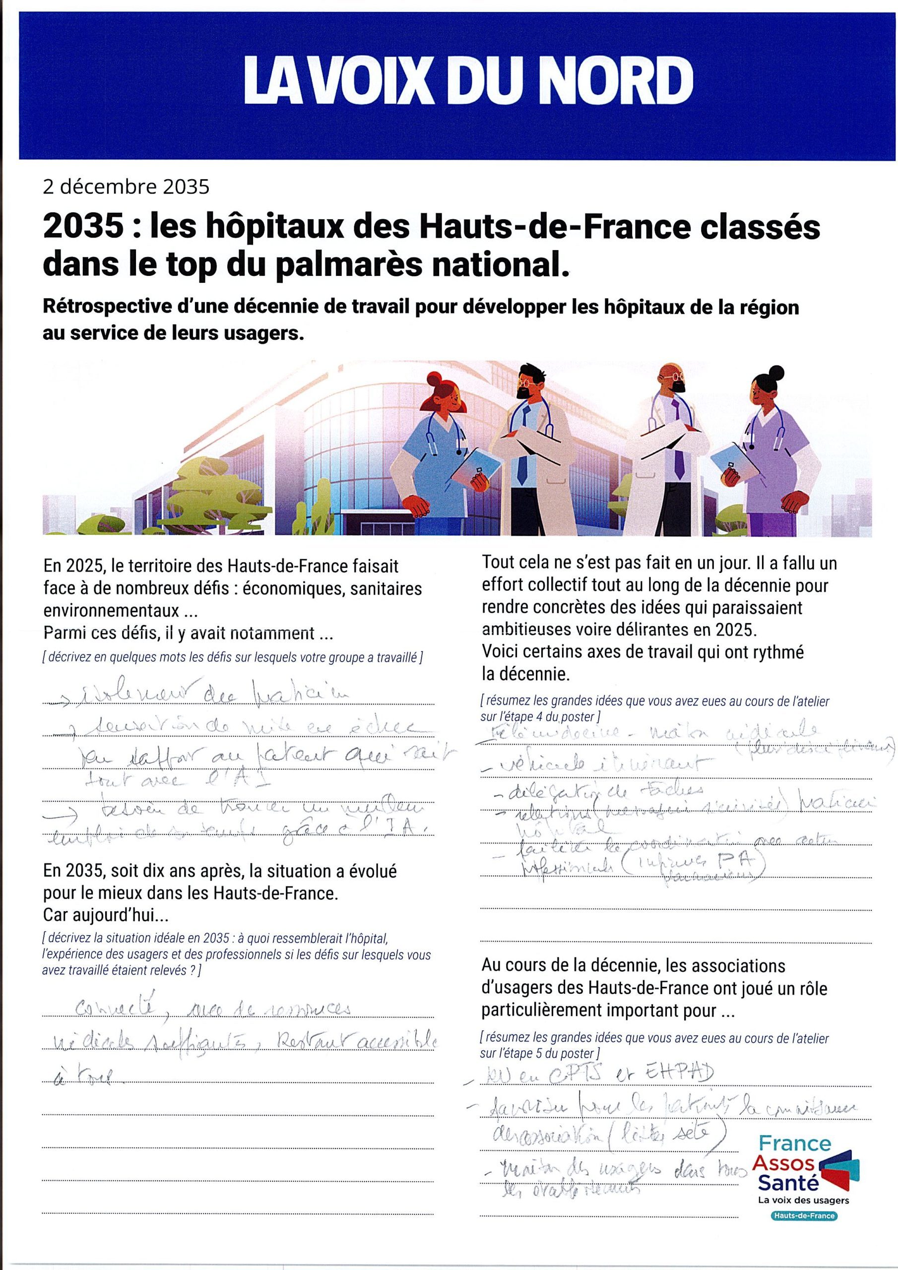 Les groupes ont été invités à se projeter dans le futur en imaginant le résultat de dix années d’évolution du système hospitalier.