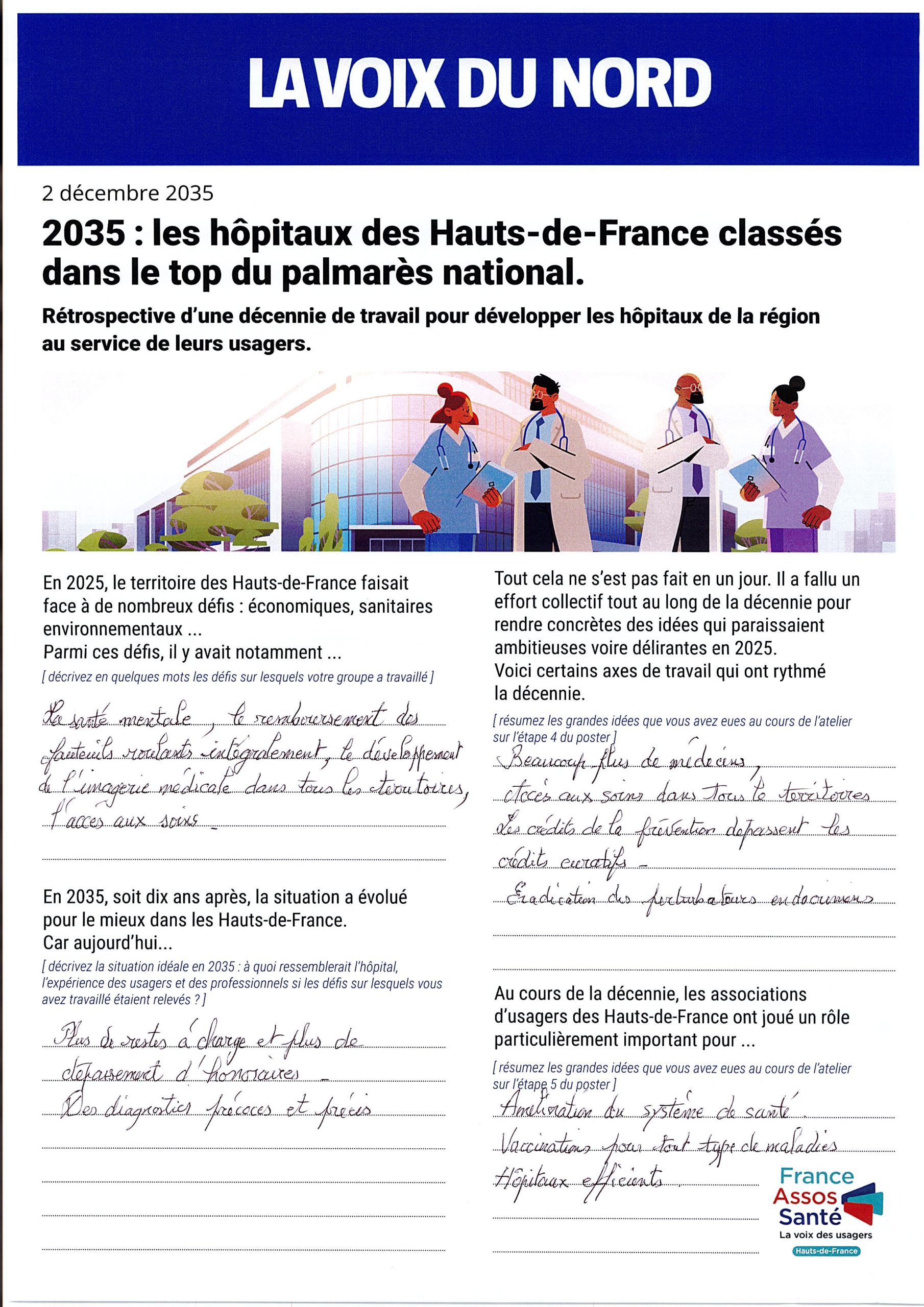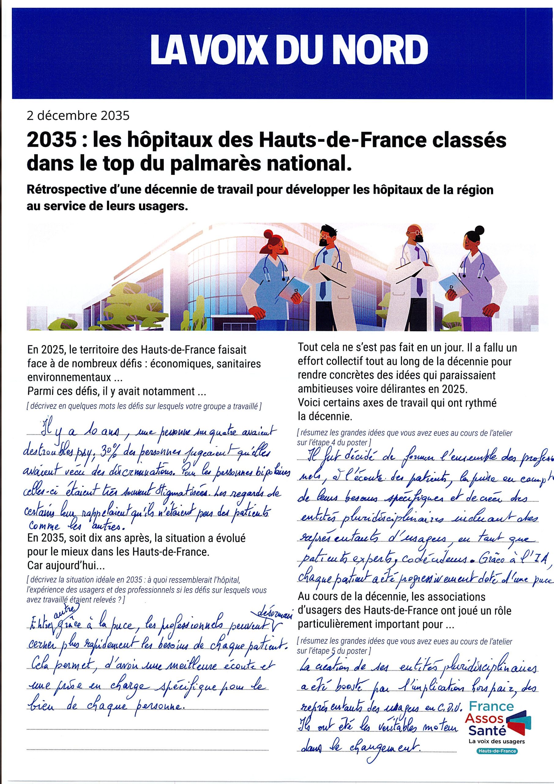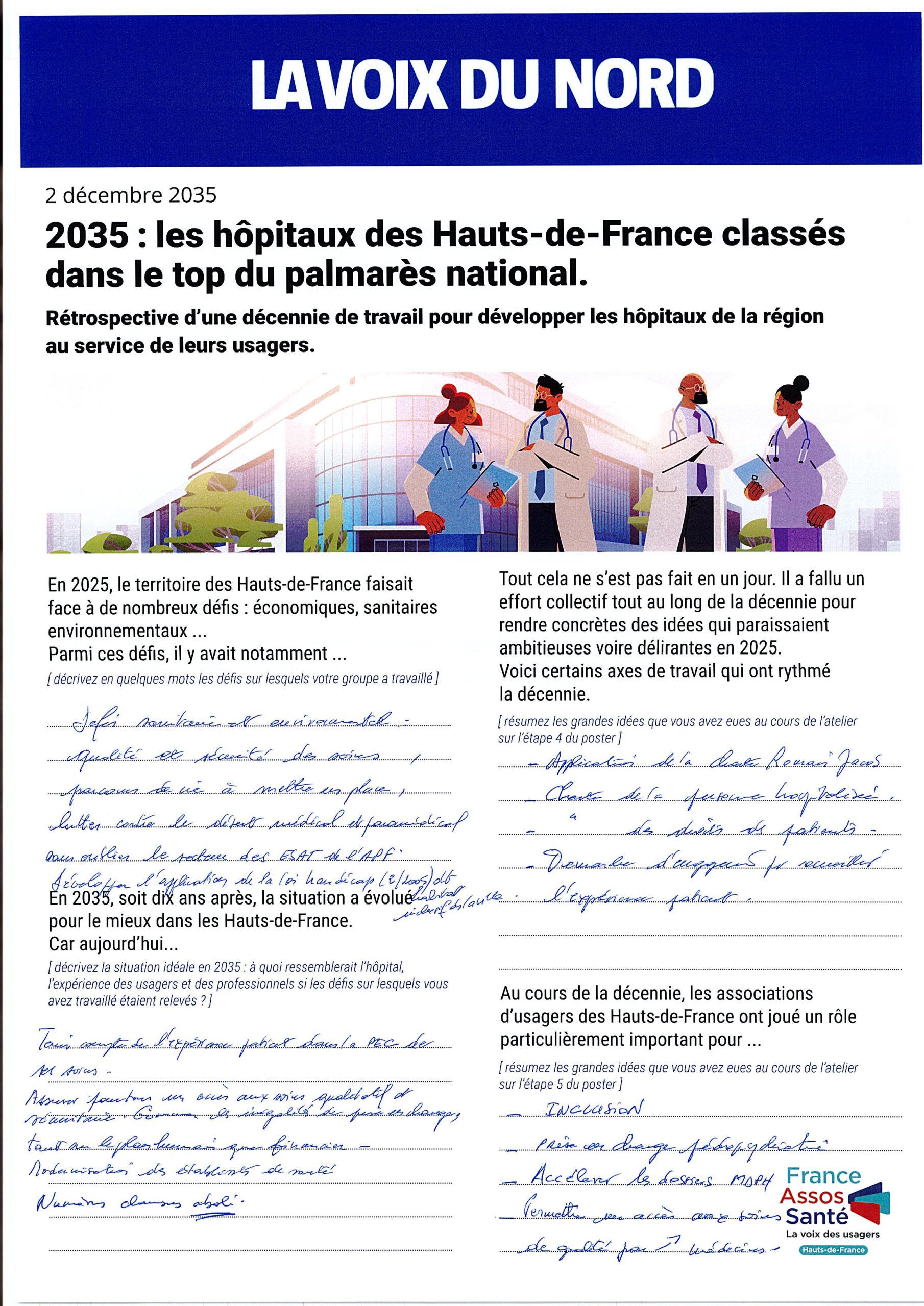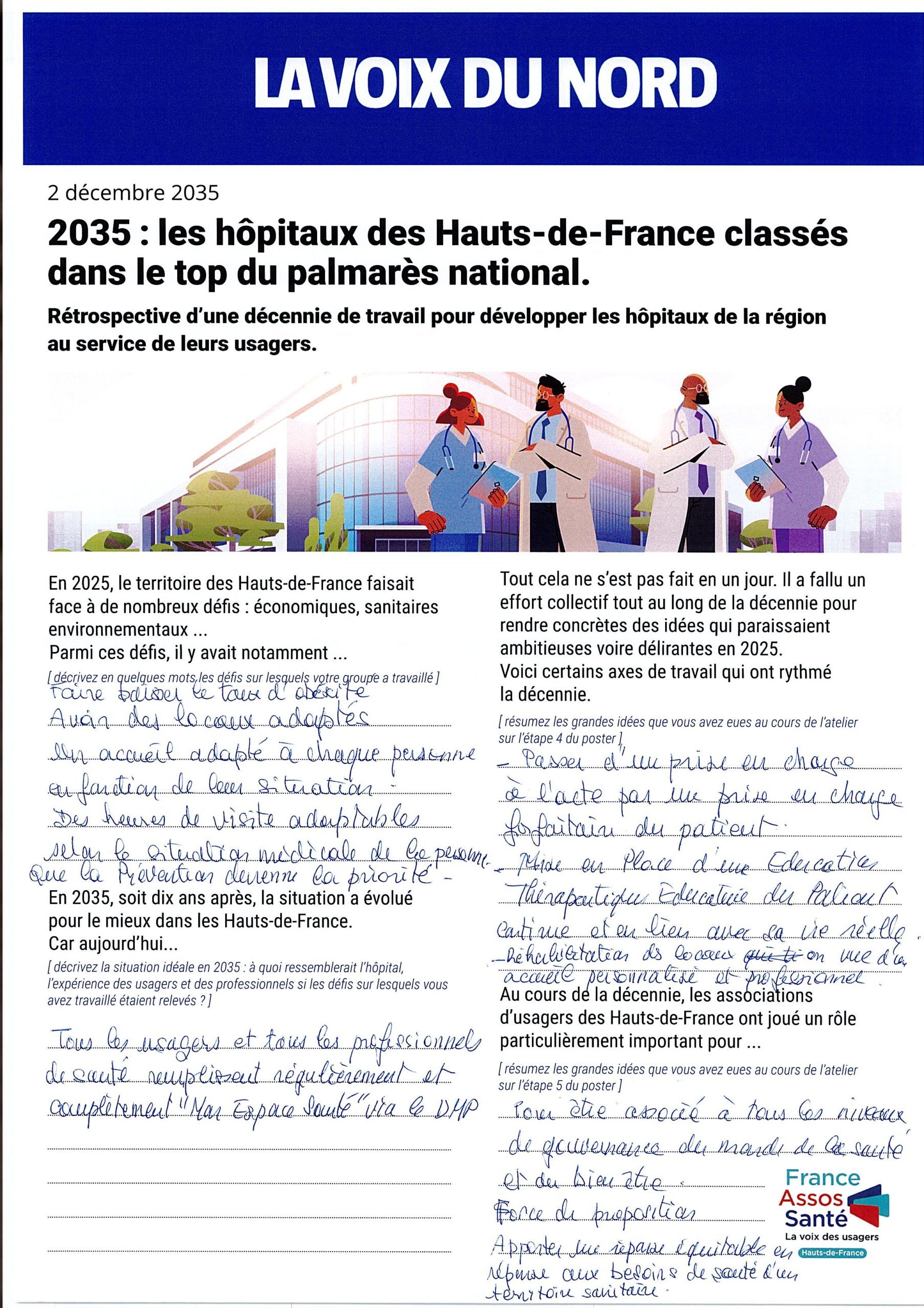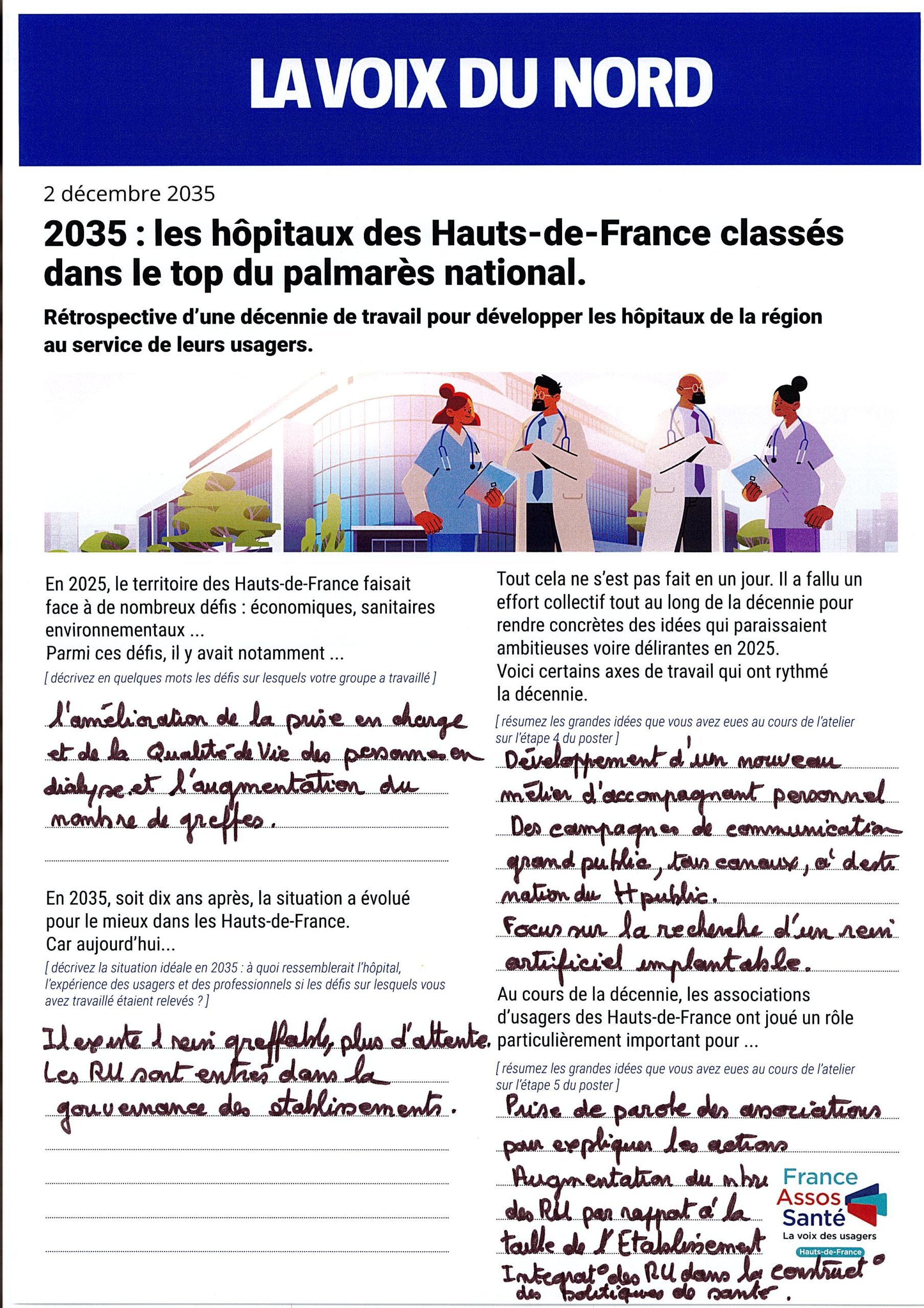 Les groupes ont été invités à se projeter dans le futur en imaginant le résultat de dix années d’évolution du système hospitalier.