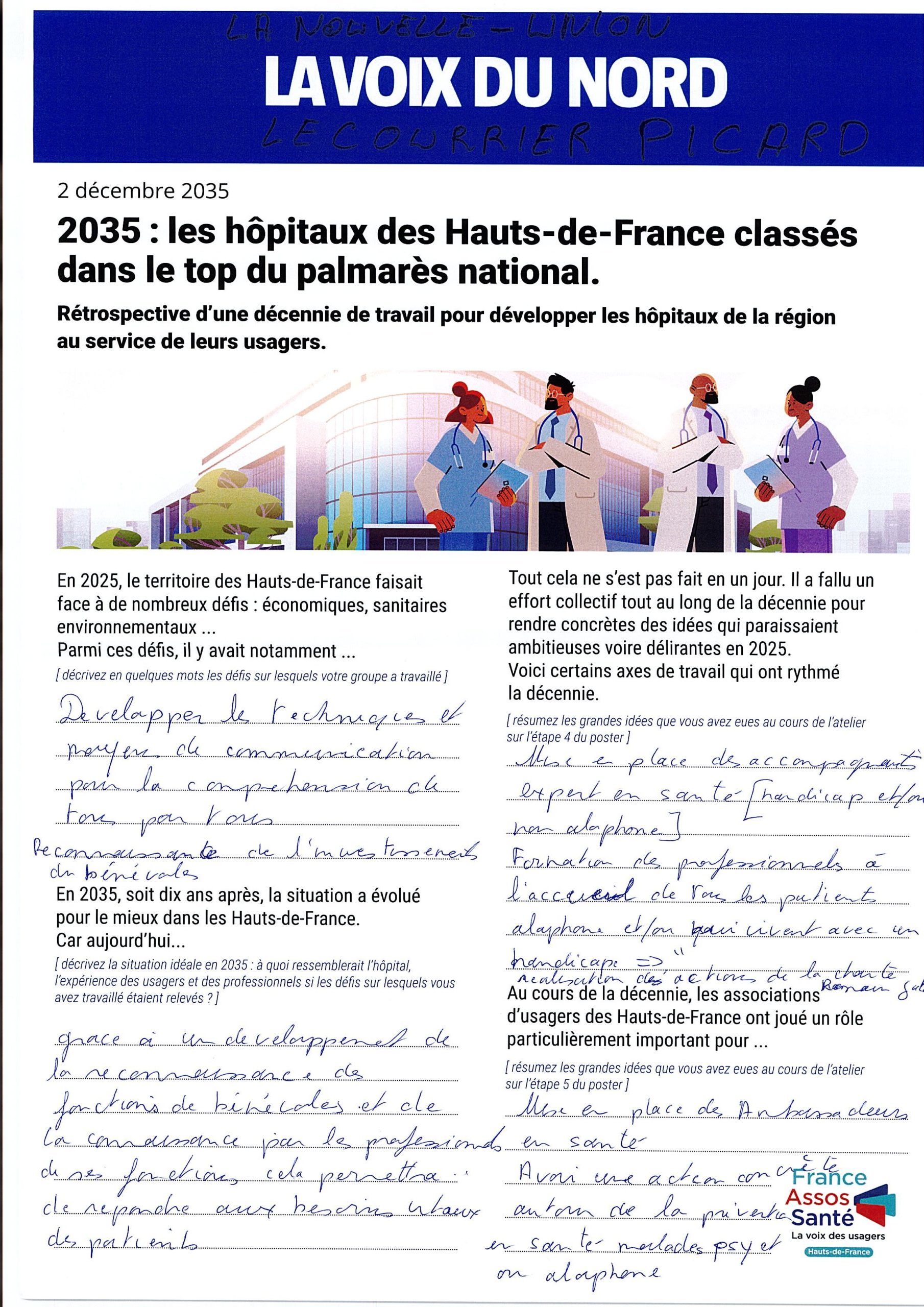 La production finale consistait à rédiger un article fictif de La Voix du Nord daté du 2 décembre 2035, intitulé :