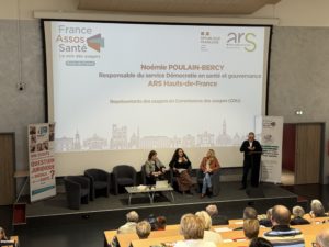 Noémie POULAIN, Responsable du service démocratie en santé et gouvernance de l’Agence Régionale de Santé Hauts-de-France est ensuite intervenue pour évoquer les enjeux de la démocratie en santé et a fait l’honneur aux participants de présenter en avant-première les résultats de l’Appel à Candidatures (AAC) pour les Commissions des usagers (CDU).